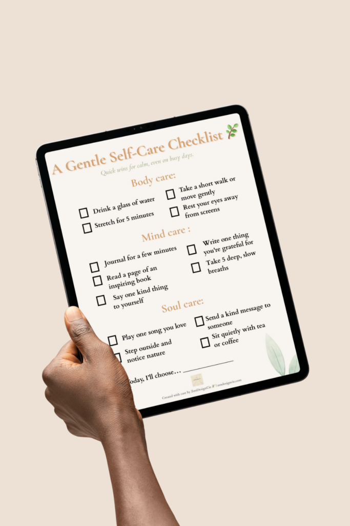A simple, calming checklist you can use in 5 minutes to reset your body, mind, and soul even on your busiest days.